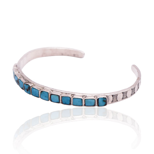 Vintage Square Blue Turquoise Cuff Sterling Silver Bracelet