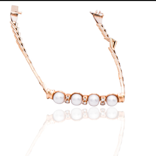 Estate Pearls and Diamond Bracelet 14K Yellow Gold