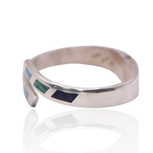 Vintage Lapis, Turquoise, Malachite Hinged Sterling Silver Bracelet