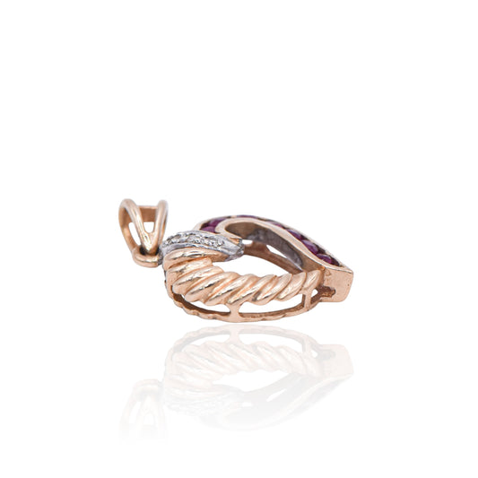 Estate Ruby and Diamond Heart Pendant 14K Yellow Gold