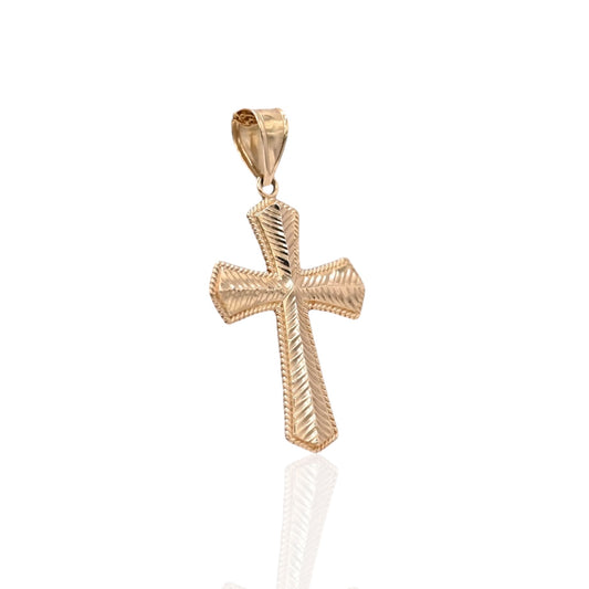 Feather-Texture Cross Pendant 14K Yellow Gold