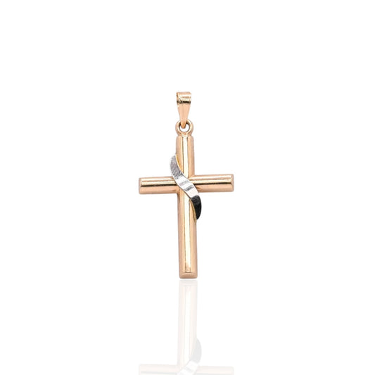 Two Tone Draped Tube Cross Pendant 14K Yellow Gold and 14K White Gold