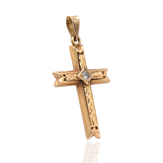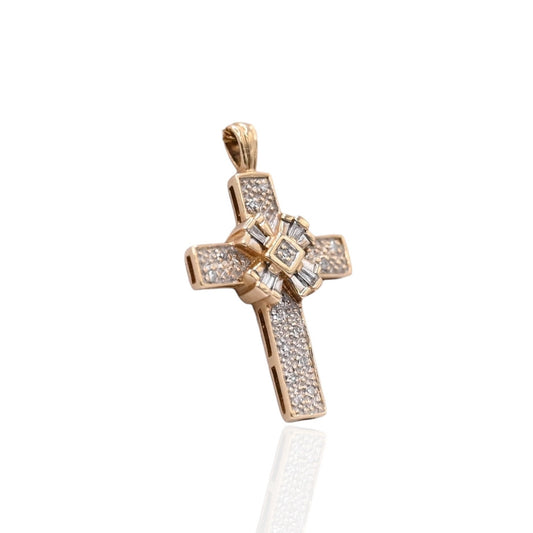 Vintage-Inspired Ornate Cross Pendant with Center Cubic Zirconia 16K Yellow Gold