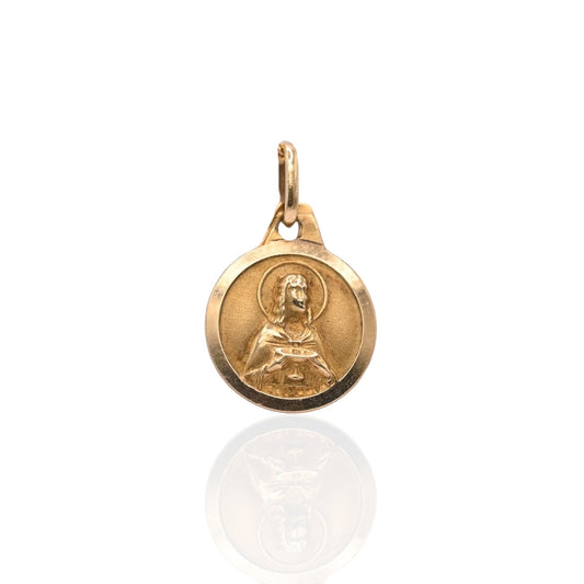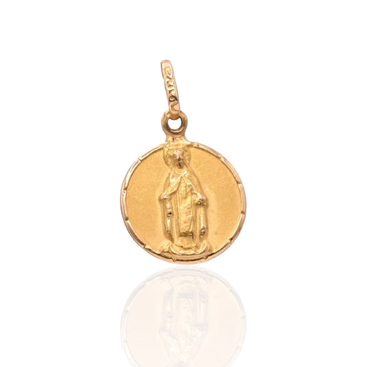 Round Miraculous Medal Pendant 18K Yellow Gold