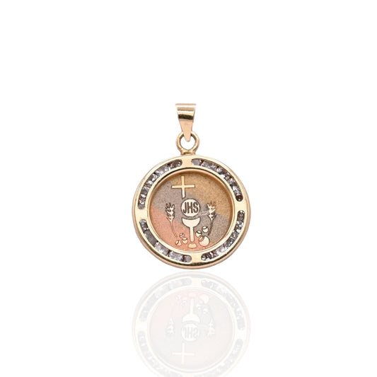 JHS Round Pendant with Channel Set Cubic Zirconia 14K Tri-color Gold