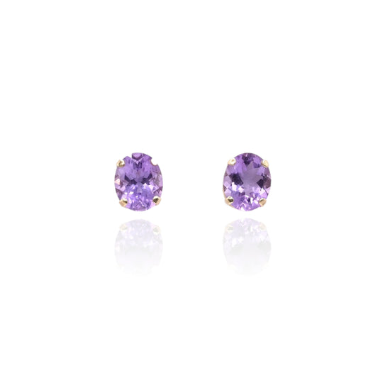 Oval Amethyst Basket Set Earrings 14K Yellow Gold with Butterfly Backs
