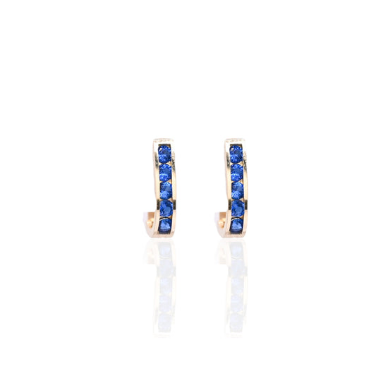 Sapphire Channel Set U-Shaped Hoop Earrings 14K Yellow Gold 2.21mm Thick/7.44mm Diameter