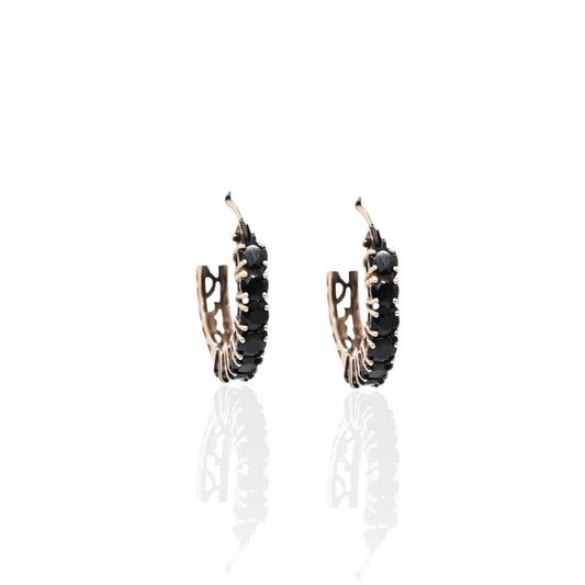 Black Cubic Zirconia Hoop Earrings 14K Yellow Gold 3.29mm Thick/18.06mm Diameter