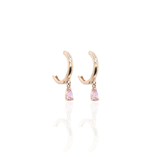 Pink Cubic Zirconia Drop Hoop Earrings 14K Yellow Gold 1.65mm Thick/10.68mm Diameter