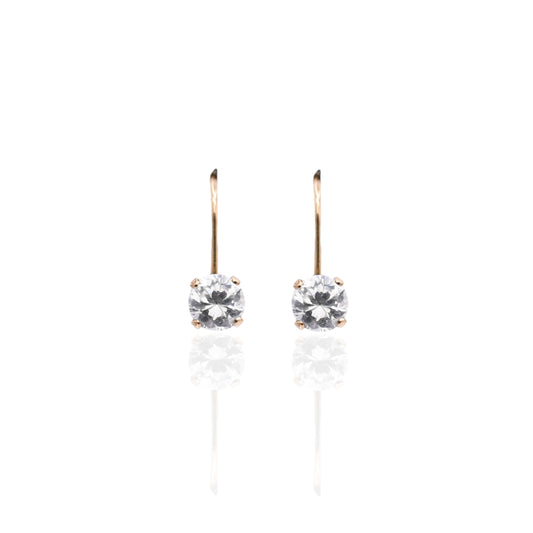 Cubic Zirconia Lever Back Earrings 14K Yellow Gold