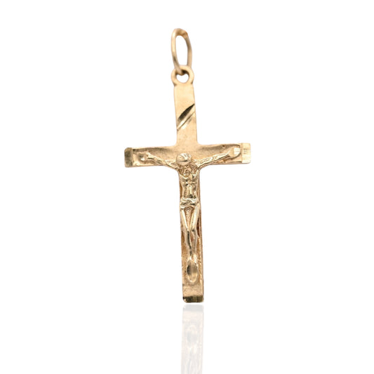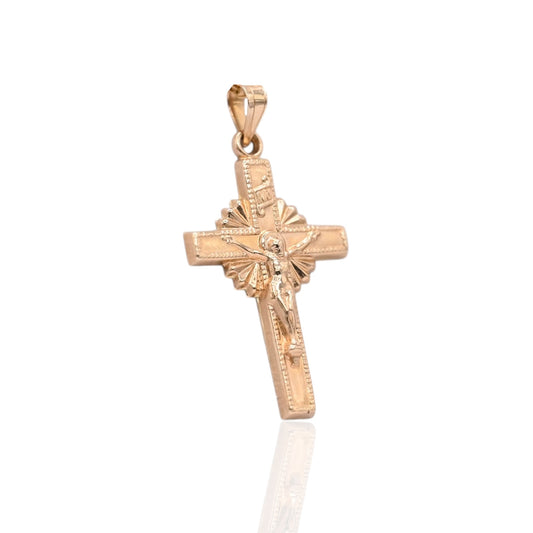 Sunburst Crucifix Pendant 14K Yellow Gold