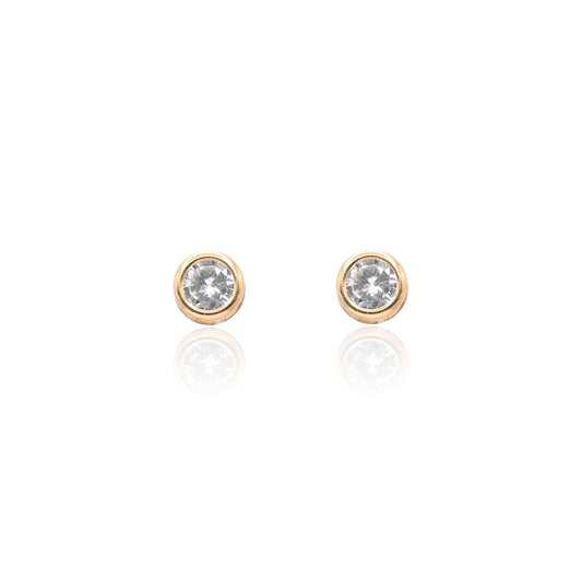 Round Cubic Zirconia Bezel Stud Earrings with Butterfly Backs 14K Yellow Gold 4.40mm