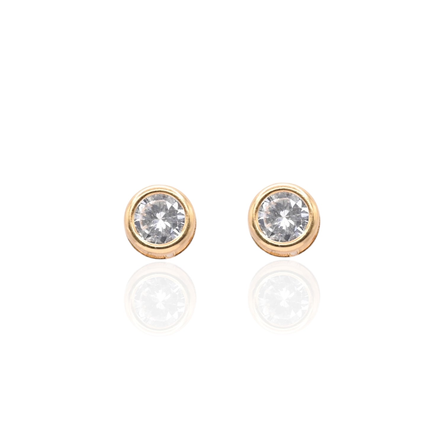 Round Cubic Zirconia Bezel Stud Earrings with Butterfly Backs 14K Yellow Gold 4.81mm