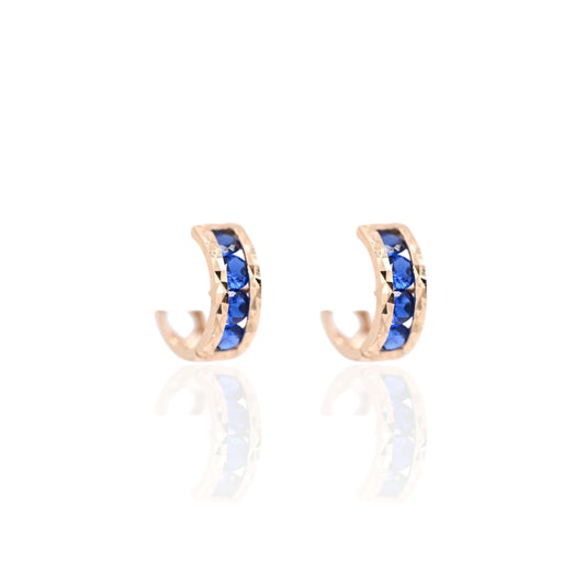 Blue Cubic Zirconia Diamond Cut Huggie Earrings 14K Yellow Gold 4.61mm Thick/12.00mm Diameter