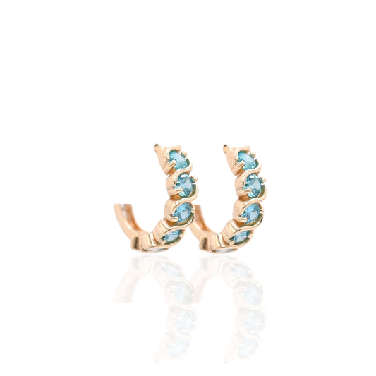 Teal Cubic Zirconia Twisted Huggie Earrings 14K Yellow Gold 3.75mm Thick/13.28mm Diameter