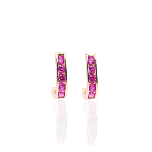 Ruby Channel Set U-Shaped Hoop Earrings 14K Yellow Gold 2.24mm Thick/7.78mm Diameter