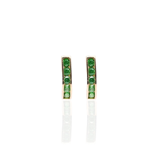 Emerald Channel Set U-Shaped Hoop Earrings 14K Yellow Gold 2.20mm Thick/7.86mm Diameter