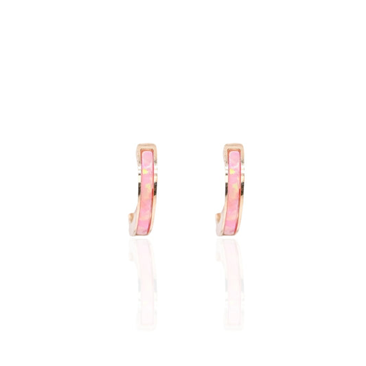 Pink Opal Huggie Earrings 14K Yellow Gold 1.94mm Thick/10.14mm Diameter