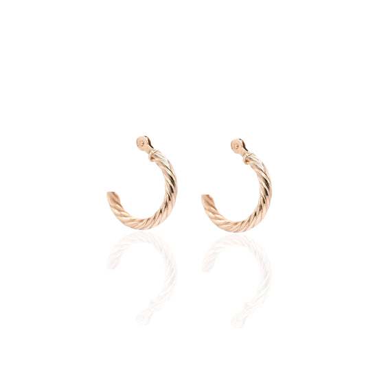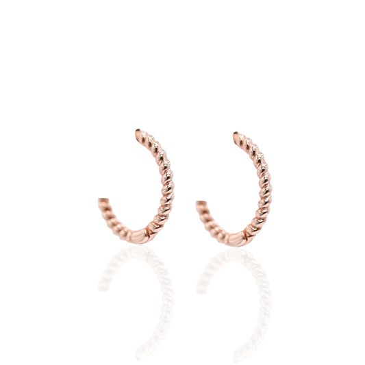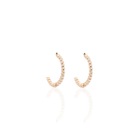 Beaded Twist Hoop Huggie Earrings 14K Rose Gold 1.8mm Thick/12.5mm Diameter