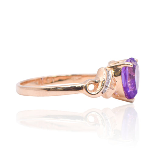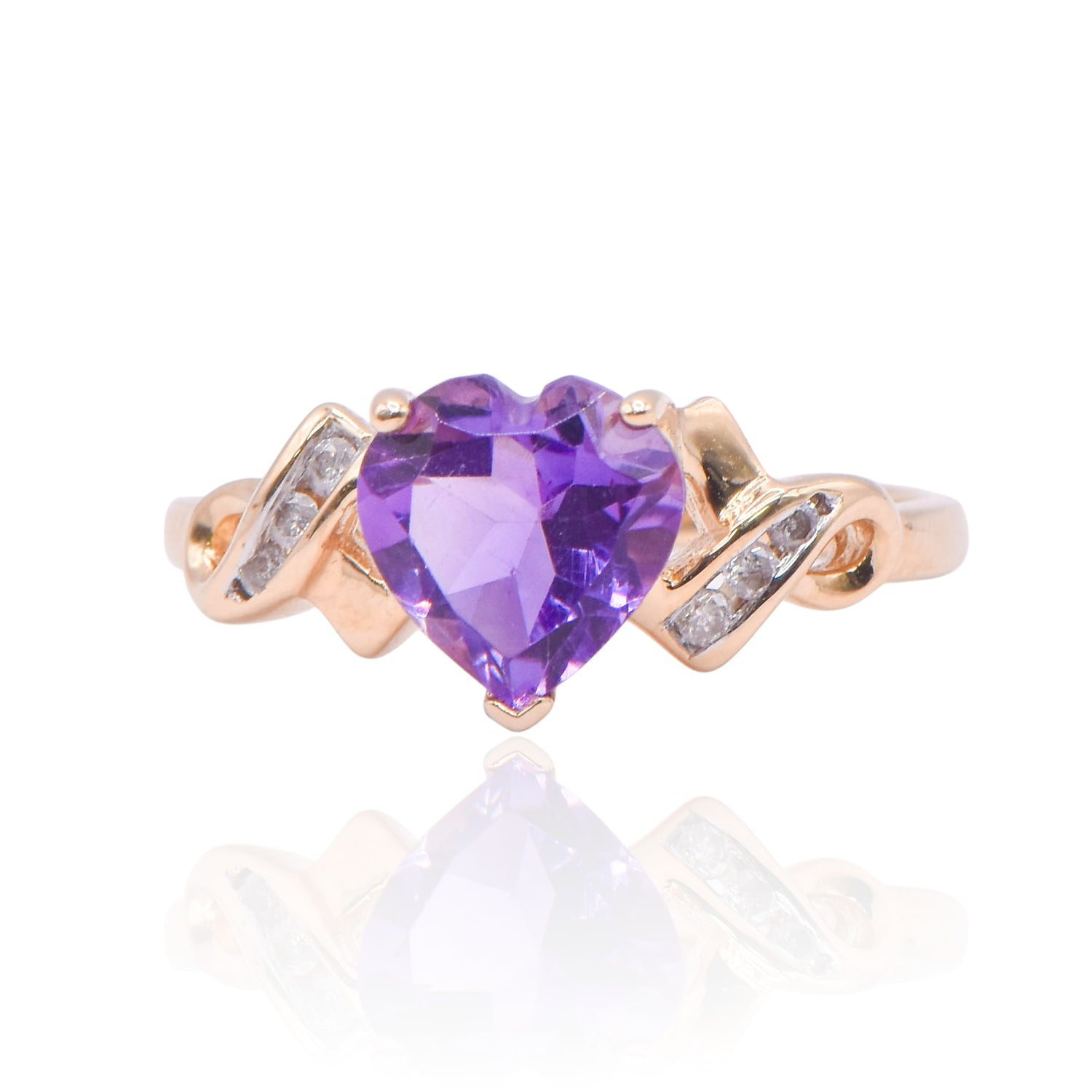 Amethyst Heart 14K Yellow Gold Ring with Accent Diamonds