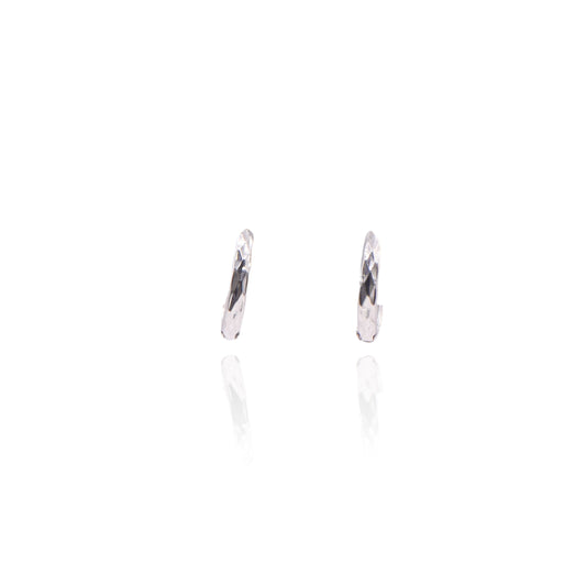 Diamond Cut Huggie 14K White Gold Hinge Earring 2.14mm Thick/12.12mm Diameter