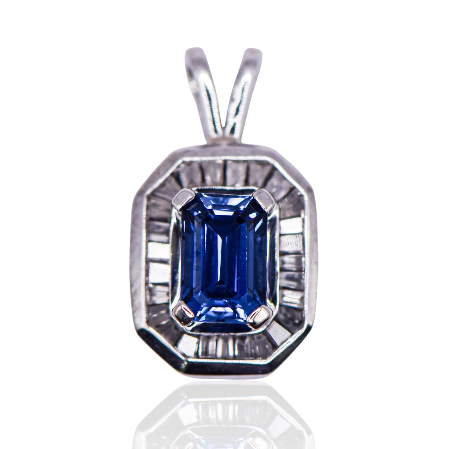 Blue Tanzanite Emerald Cut 14K White Gold Pendant
