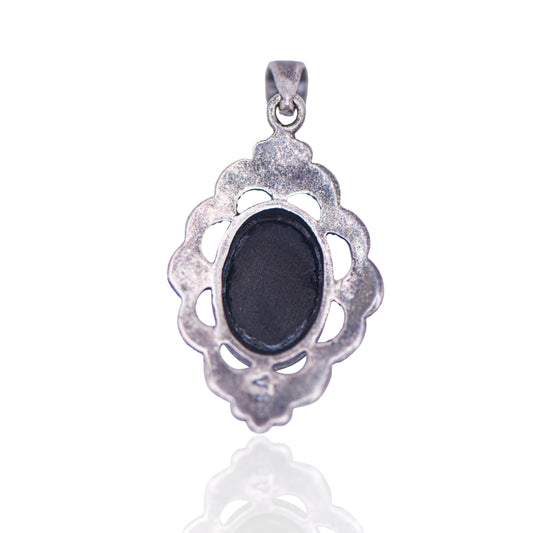 Vintage Marcasite and Onyx Sterling Silver Pendant