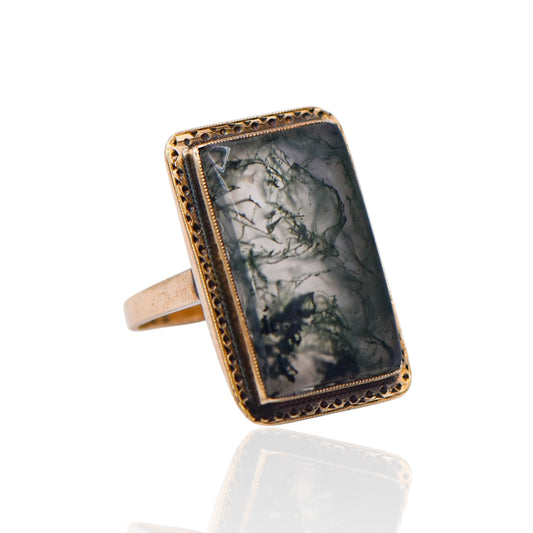Emerald Asscher Bezel with Diamond Side Stone 14K Yellow Gold Ring Size 7