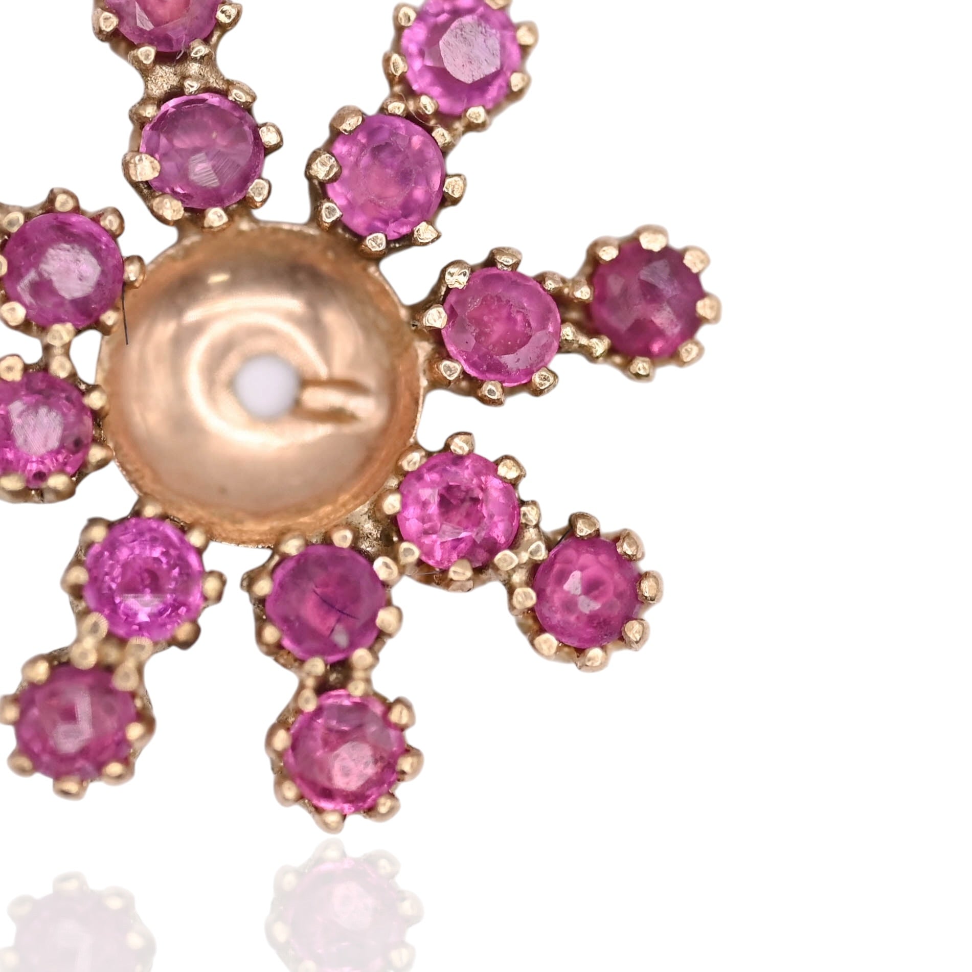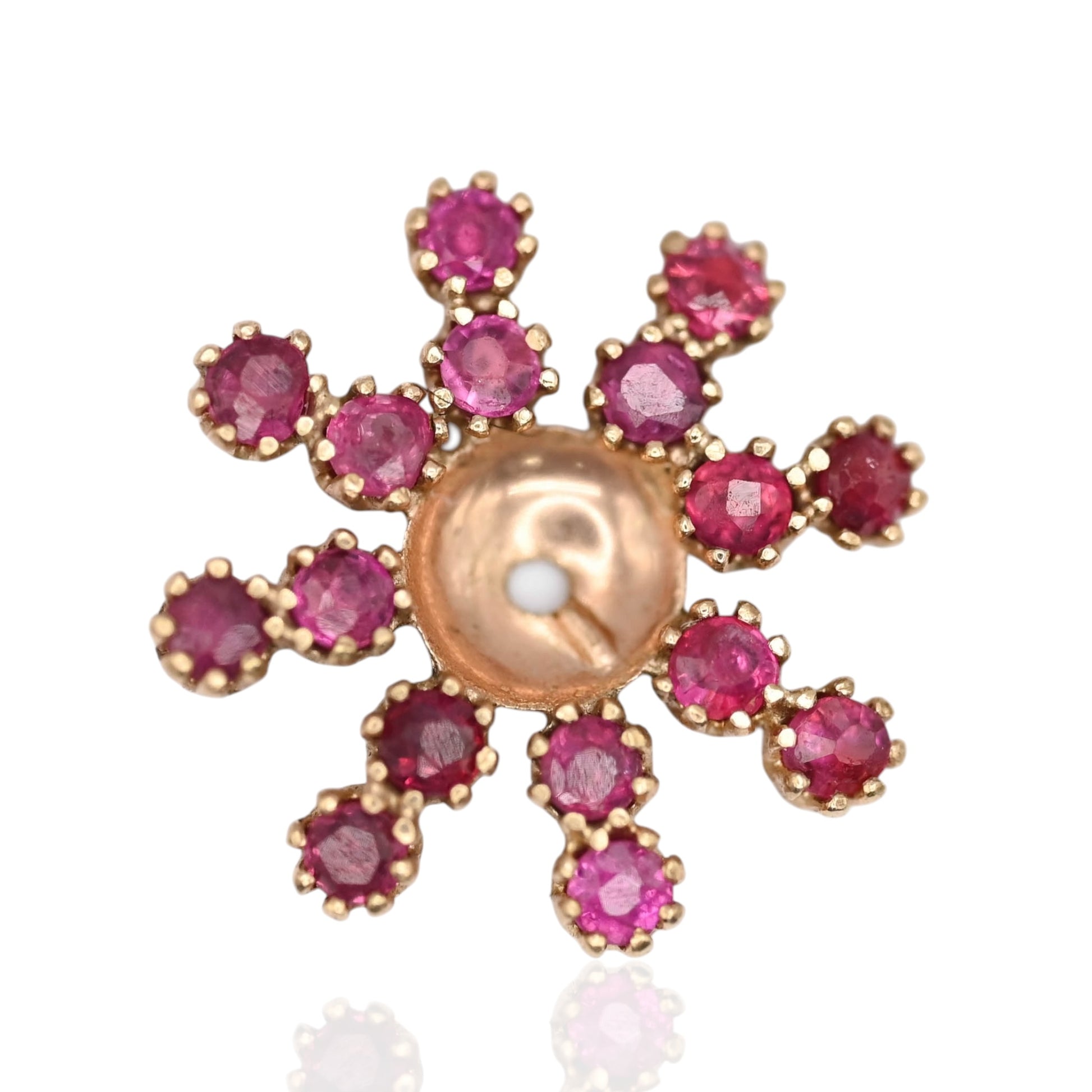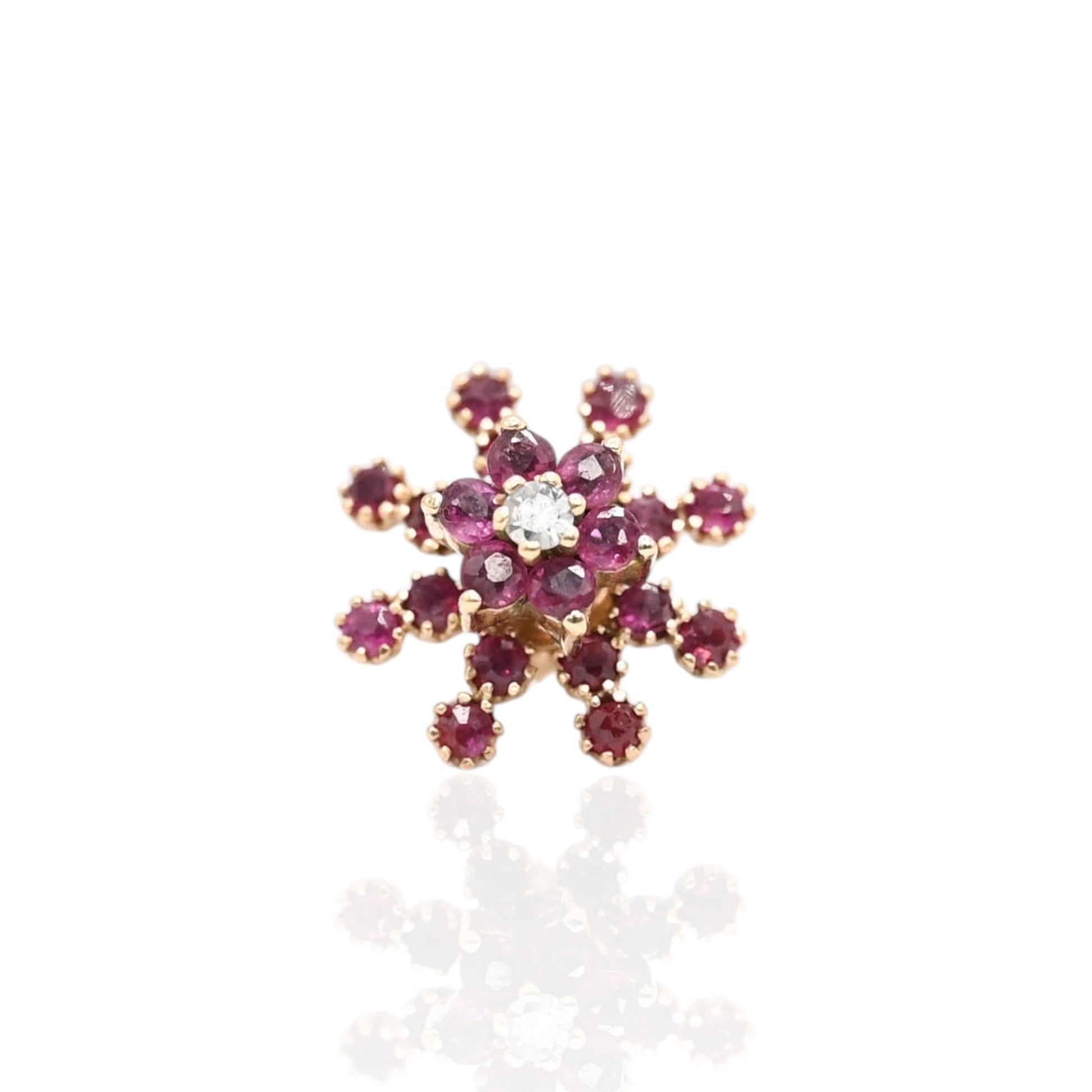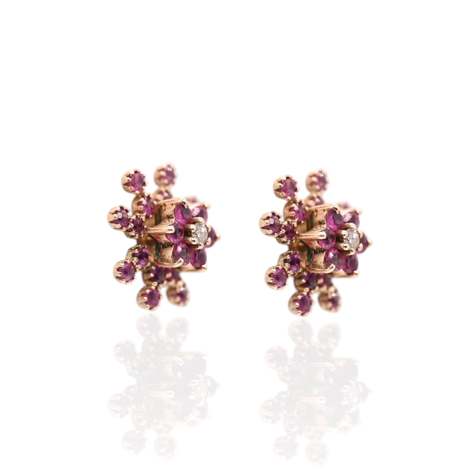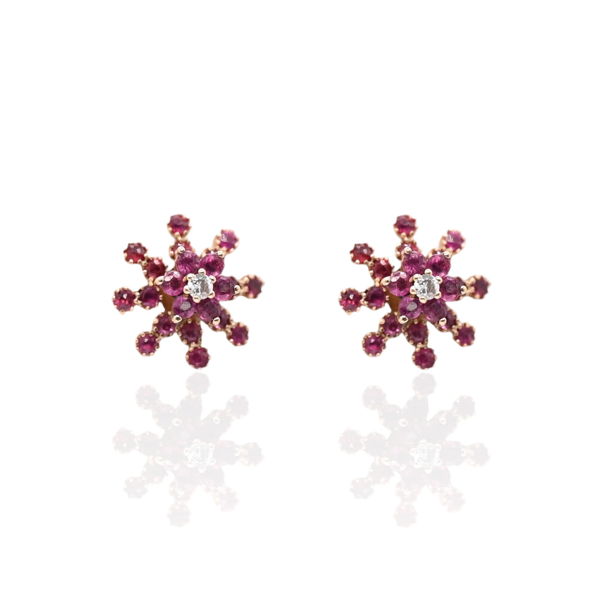 Ruby Flower Earrings with Accent Diamond and Ruby Jacket 14K Yellow Gold with Butterfly Backs