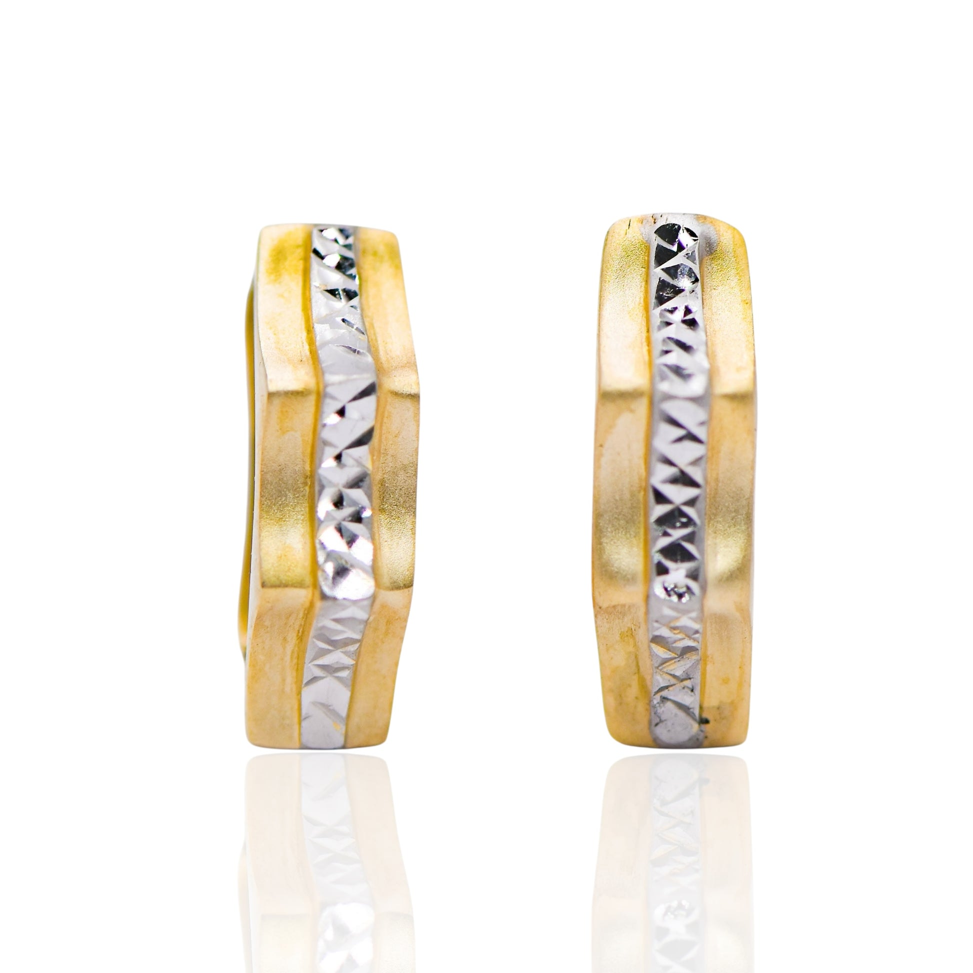 Two Tone Earrings Jagged Style 14K Yellow Gold
