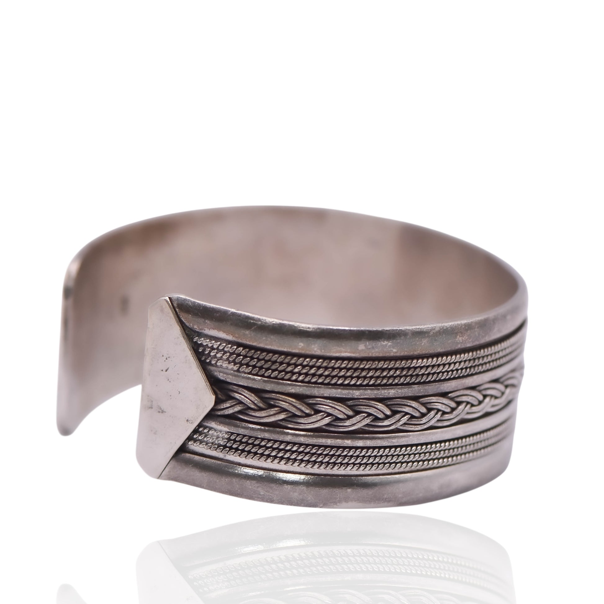 Vintage Wide Braided Cuff Sterling Silver Bracelet